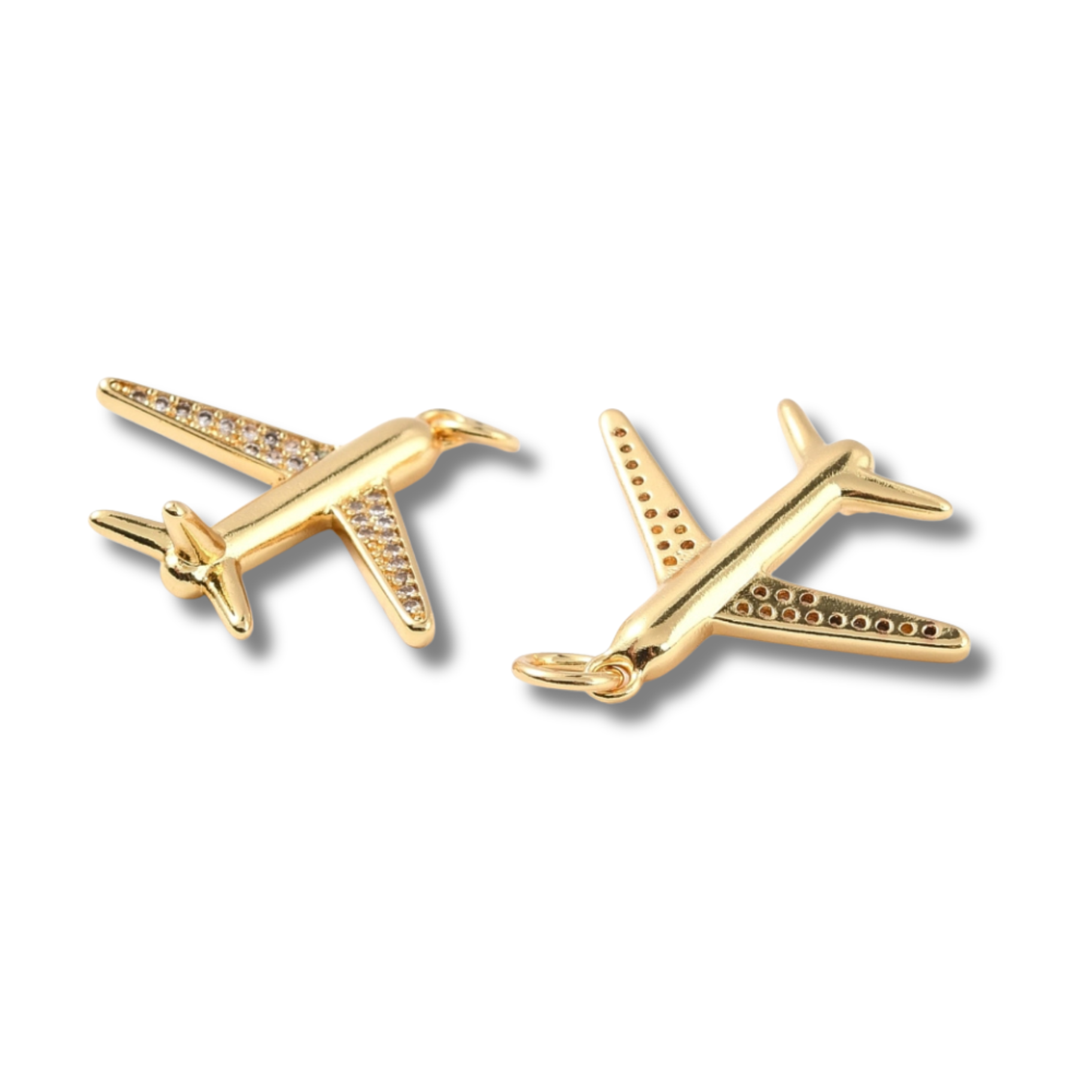 These dazzling airplane charms are made for dreamers, travelers, and jet-setters! Available in both gold and silver finishes, each charm features shimmering gemstones that add just the right touch of sparkle. Perfect for charm necklaces or bracelets, they’re a fun and meaningful way to keep your love of adventure close—wherever life takes you.