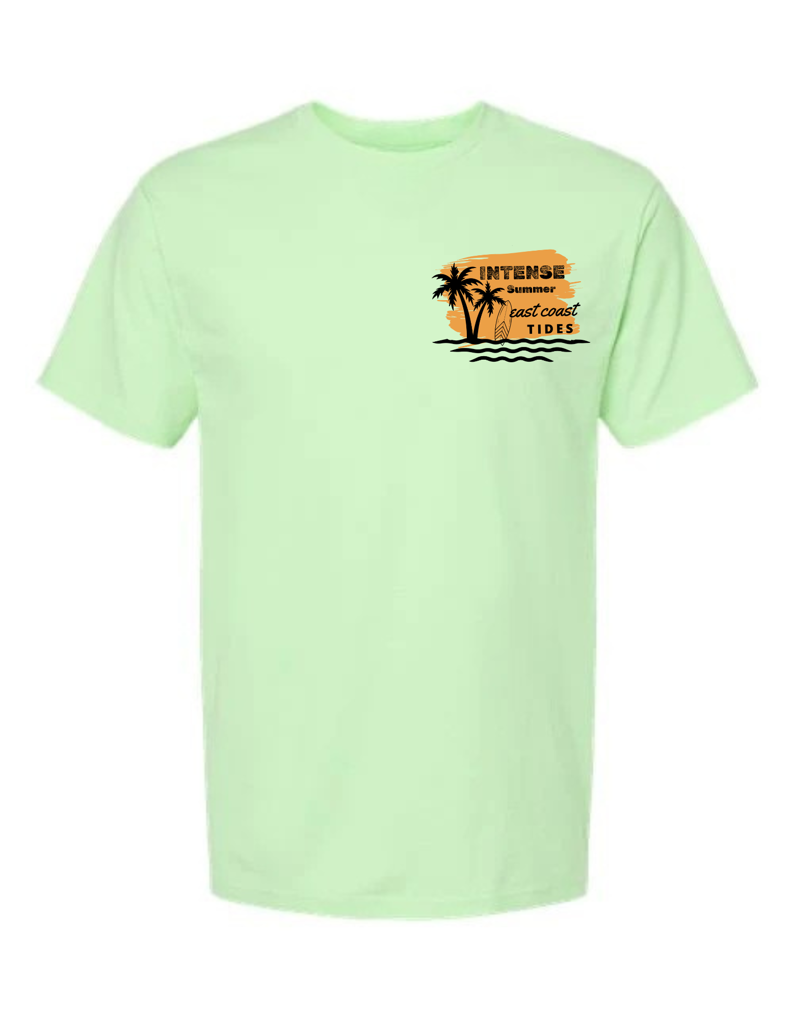 Catch the vibe of an Intense Summer with our East Coast Tides tee—designed for sun-chasers, wave-riders, and anyone who lives for those golden hour beach moments. Featuring a bold palm tree and surfboard graphic on both the front and back, this shirt brings major vacation energy wherever you go.
