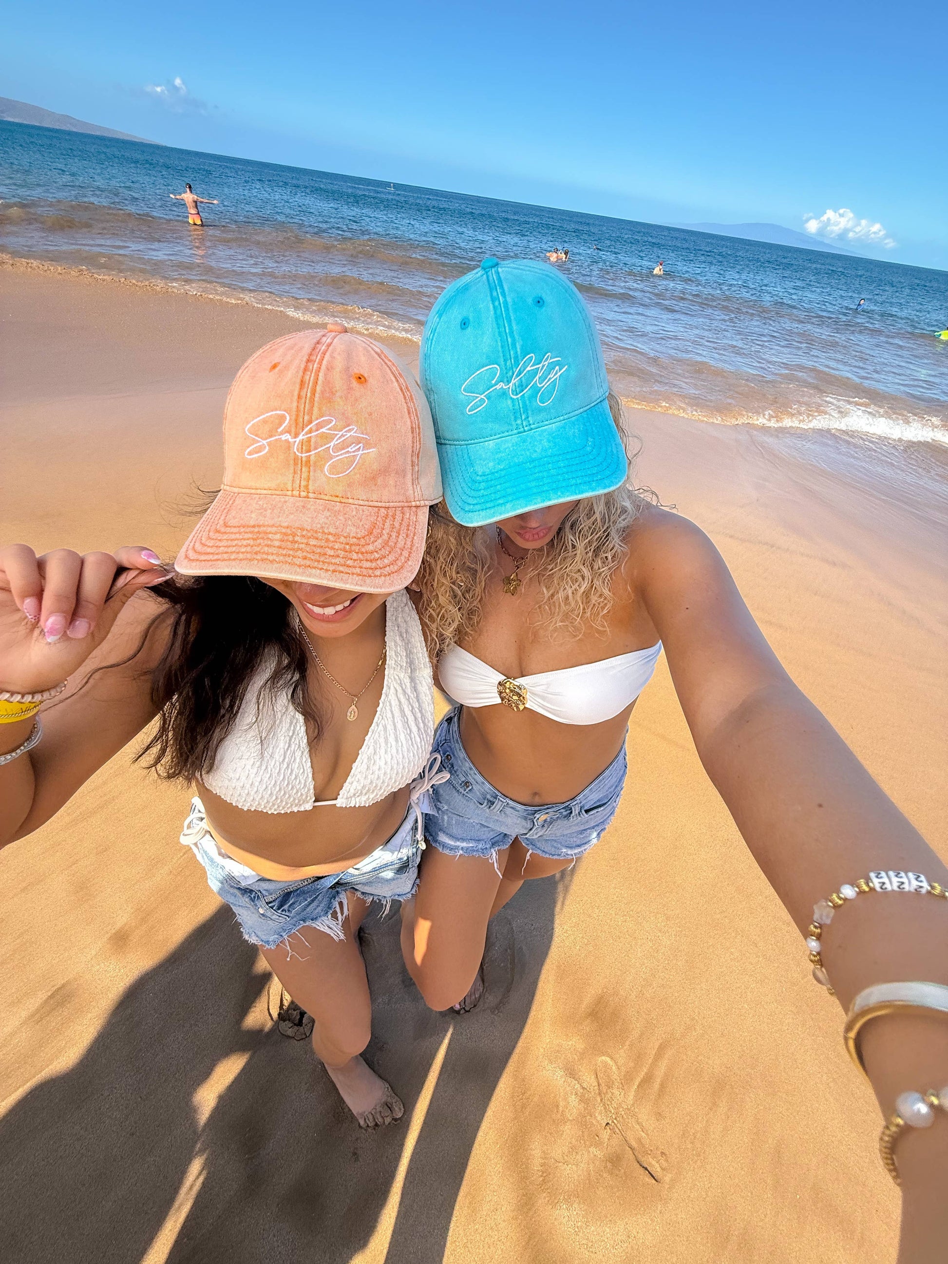 Bring the attitude and the aesthetic with our acid-washed Salty cap! This laid-back, lived-in look pairs perfectly with beach days, messy buns, and not caring what anyone thinks. With its vintage vibe and bold embroidery, it’s the ultimate cap for anyone serving looks and side-eye. 🧢🌊