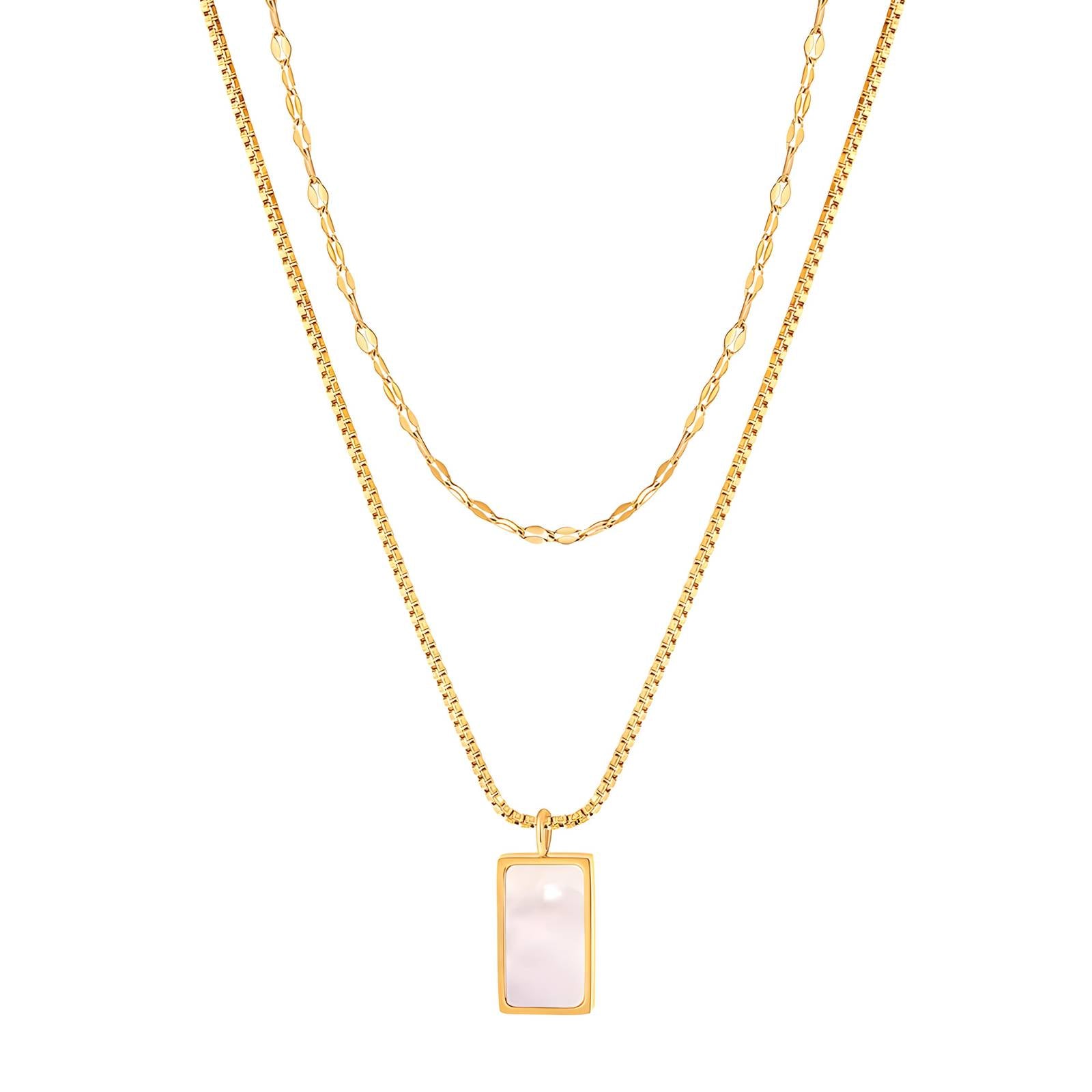 Effortlessly layered, endlessly chic — the Sola Drop Duo Necklace brings a fresh take on everyday elegance. Featuring two perfectly paired gold chains and a luminous rectangular charm, this piece makes styling easy with just the right mix of polish and personality.
