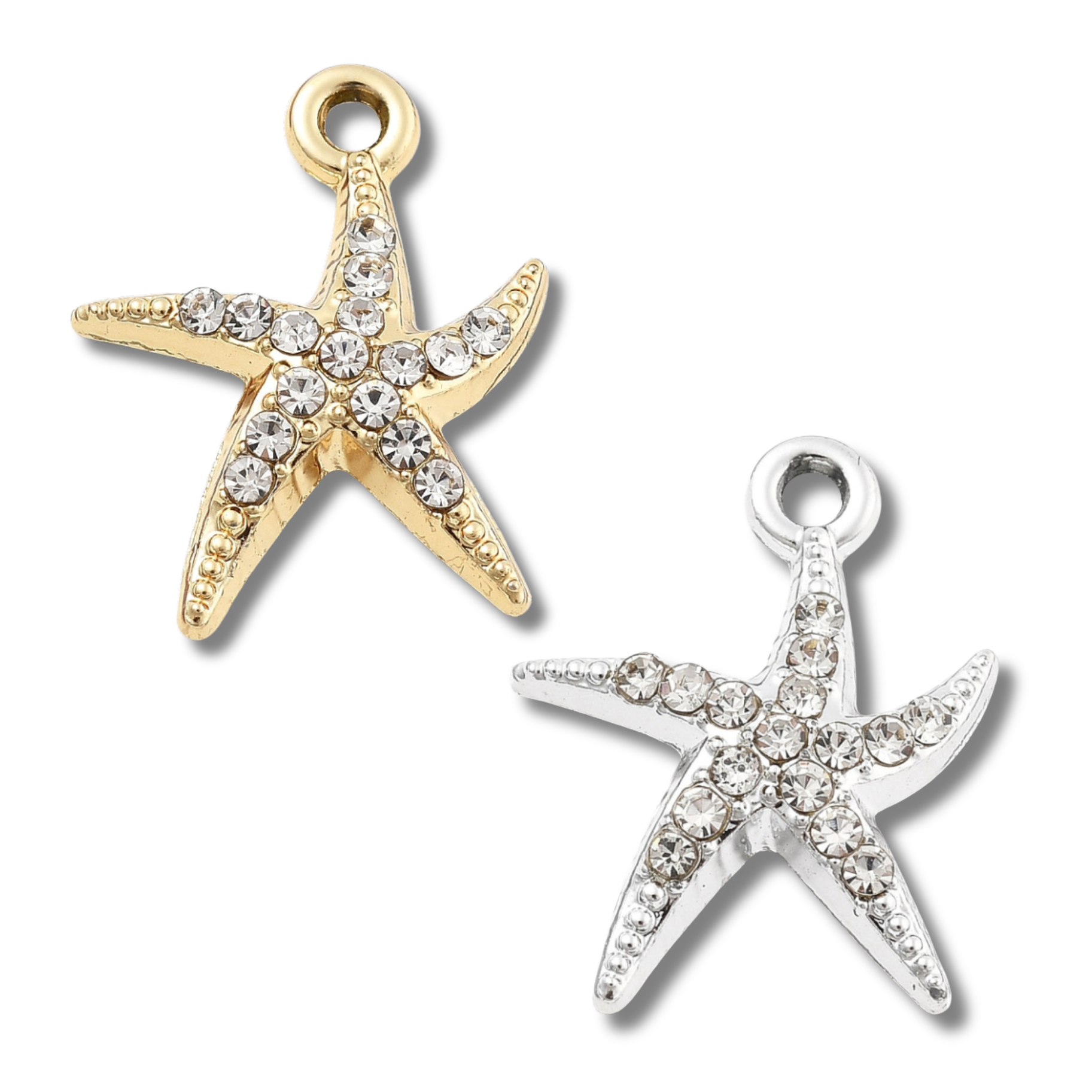 These adorable starfish charms bring coastal charm and shimmer to your jewelry collection! Available in your choice of gold or silver, each charm is adorned with tiny gemstones for a subtle, ocean-inspired sparkle. Perfect for charm necklaces or bracelets, they’re a sweet reminder of sunshine, saltwater, and seaside adventures.