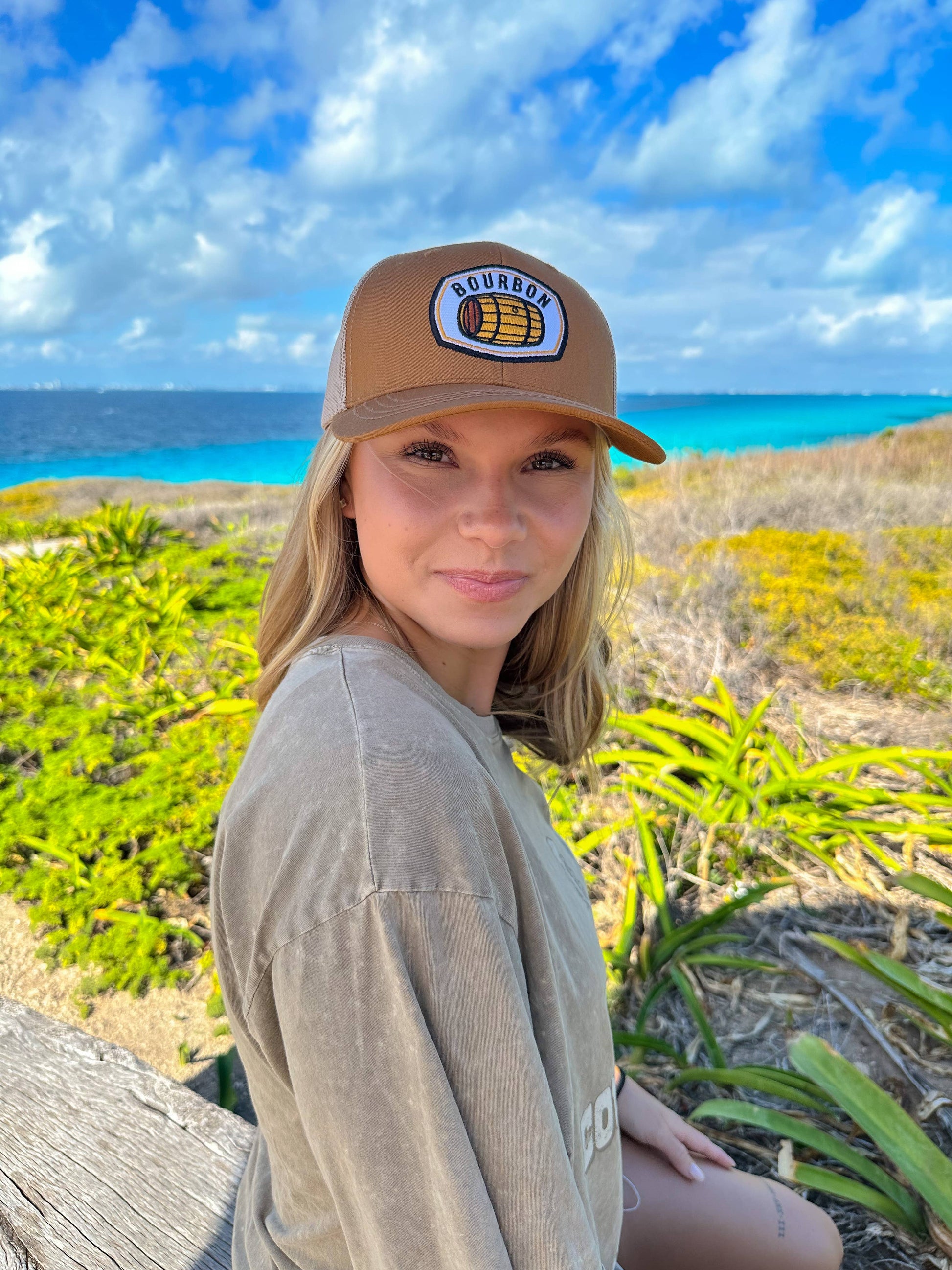 Bourbon Trucker Hat – Whiskey Barrel Mesh Snapback Cap for Bourbon Lovers Unisex